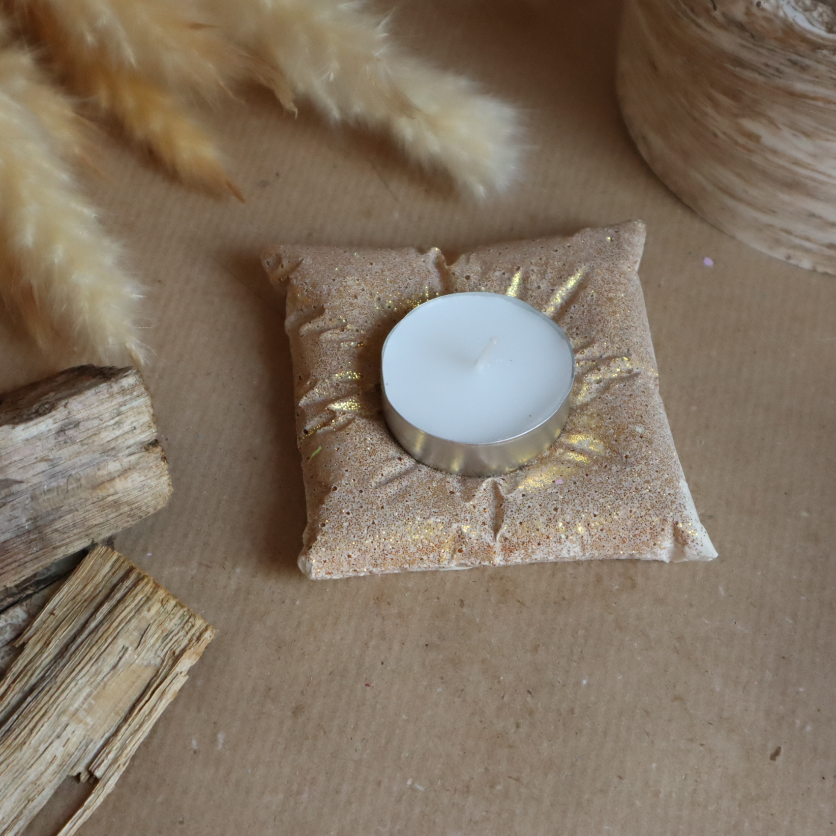 Bougeoir coussin doré pailleté
